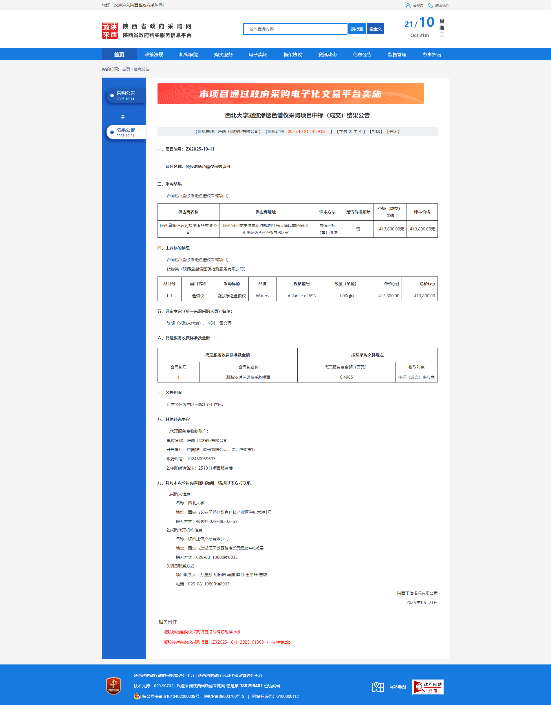 BB平台凝胶渗透色谱仪采购项目中标(成交)结果公告